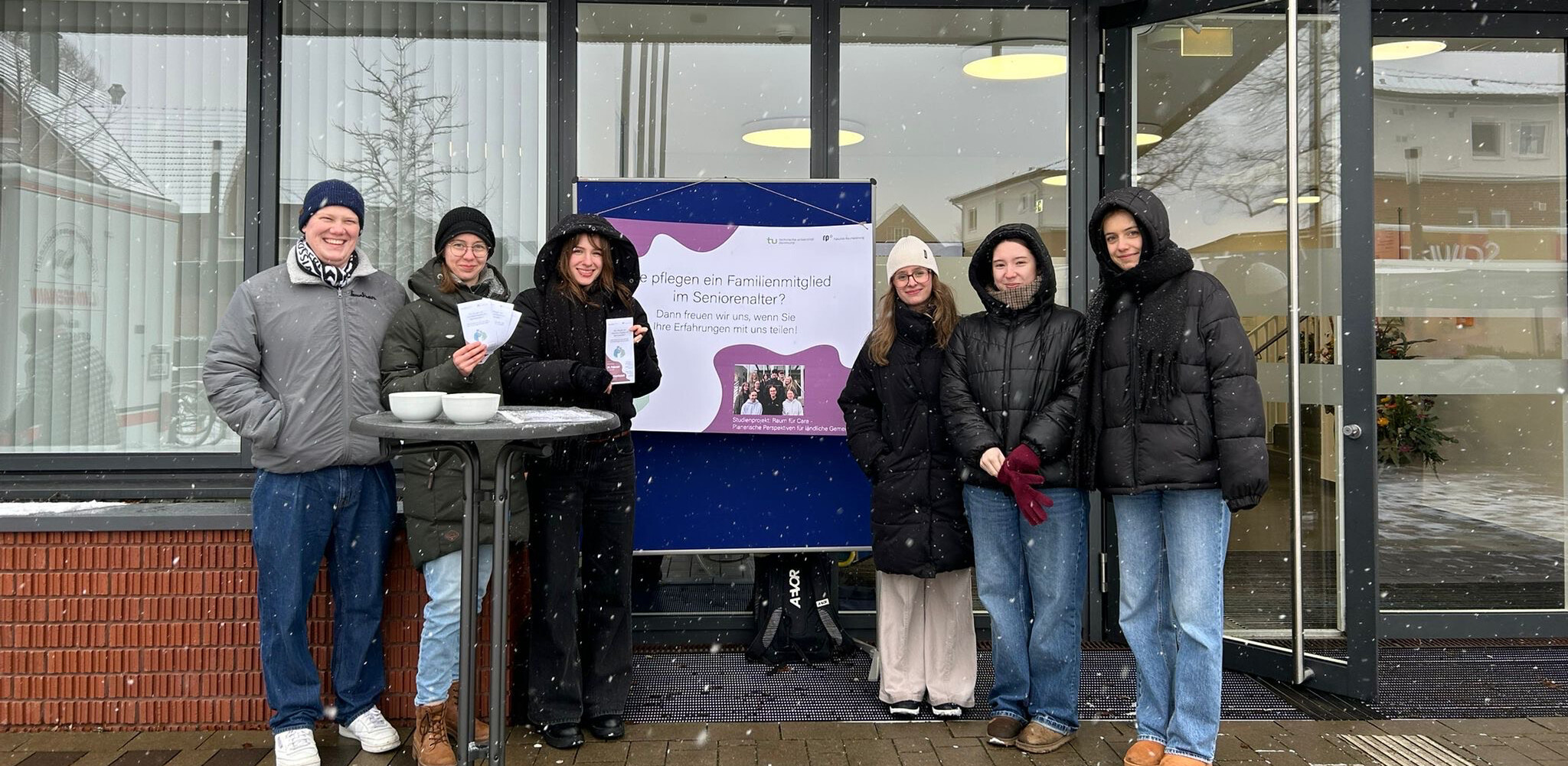 Wie gut ist Ostbevern aufgestellt, wenn es um die Pflege, Betreuung und Unterstützung von Familienmitgliedern im Alltag geht? Dieser Frage gehen derzeit Studierende der Fakultät Raumplanung der Technischen Universität Dortmund im Rahmen des Forschungsprojekts „Raum für Care - Planerische Perspektiven für ländliche Gemeinden” nach. Dazu waren die Studierenden bereits am 29. Januar auf dem Wochenmarkt in Ostbevern unterwegs, um mit Bürgerinnen und Bürgern ins Gespräch zu kommen. Schnell zeigte sich, dass das Thema der Sorge- und Pflegearbeit viele Menschen betrifft.