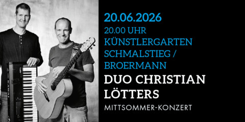 Mit dem „Duo Christian Lötters“ steht handgemachte Musik mit bewegenden deutschen Texten – getragen von Gitarre und Klavier – auf dem Programm.